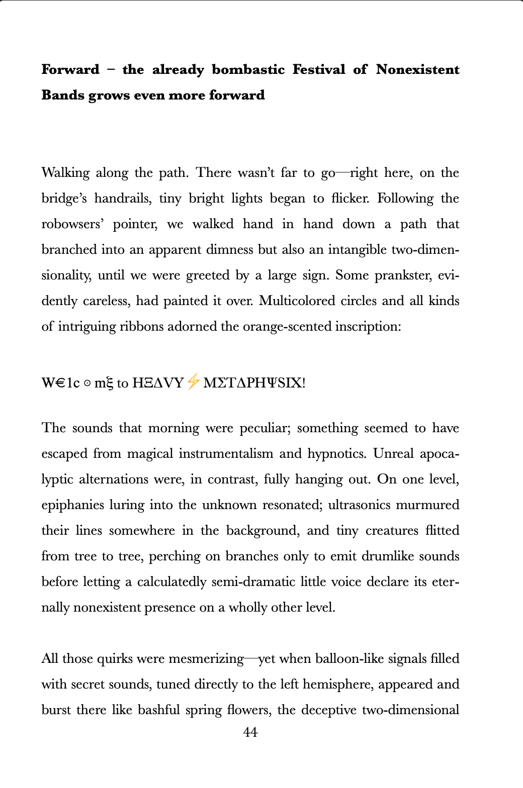 Follow Olaf and Lotta—along with their glitching robotic counterpart—as they navigate a fragmented world of hidden spaces, secret voids, and auditory structures. Concepts like “primordial sound” and “freak zero” form the book’s philosophical backbone, challenging conventional notions of time, space, and identity.